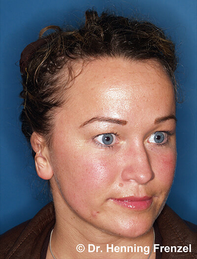Rekonstruktion mit einem individuellen 3D-Polyethylenimplantat. Ergebnis 6 Monate nach der Operation.